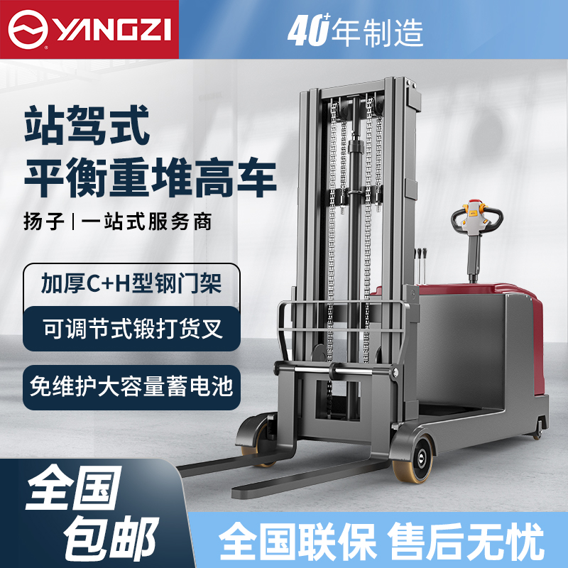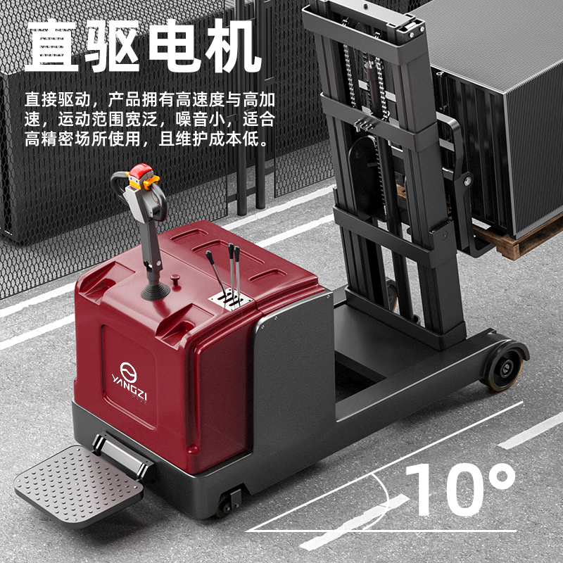 揚子無(wú)腿式升高堆垛車(chē)CPD-J:全電動(dòng)的站駕式平衡重推堆高車(chē),強勁高效操作便捷,不挑托盤(pán),還配有免維護電池續航更長(cháng)久。