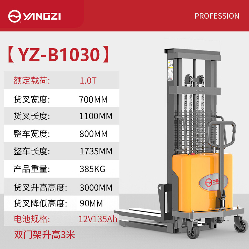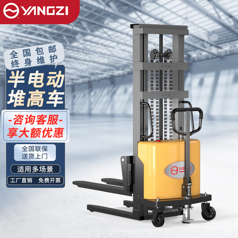 揚子半電動(dòng)升降堆高叉車(chē)YZ-B1030載重1噸升高3米,電動(dòng)液壓升降/加厚C型貨叉/根據工況定制